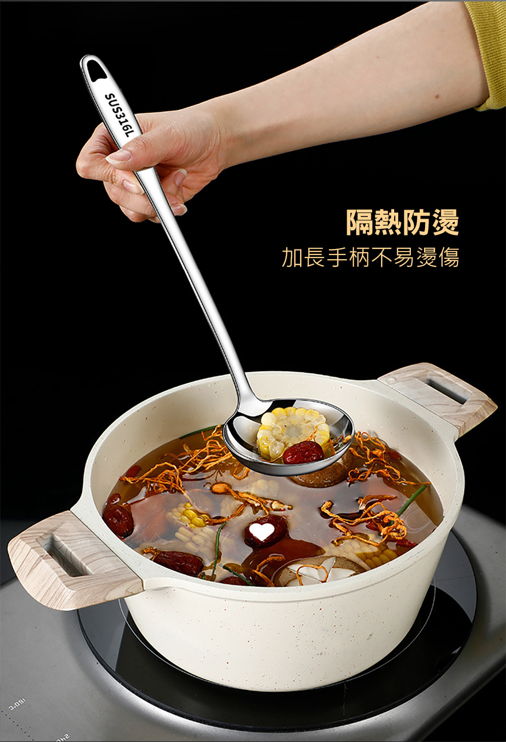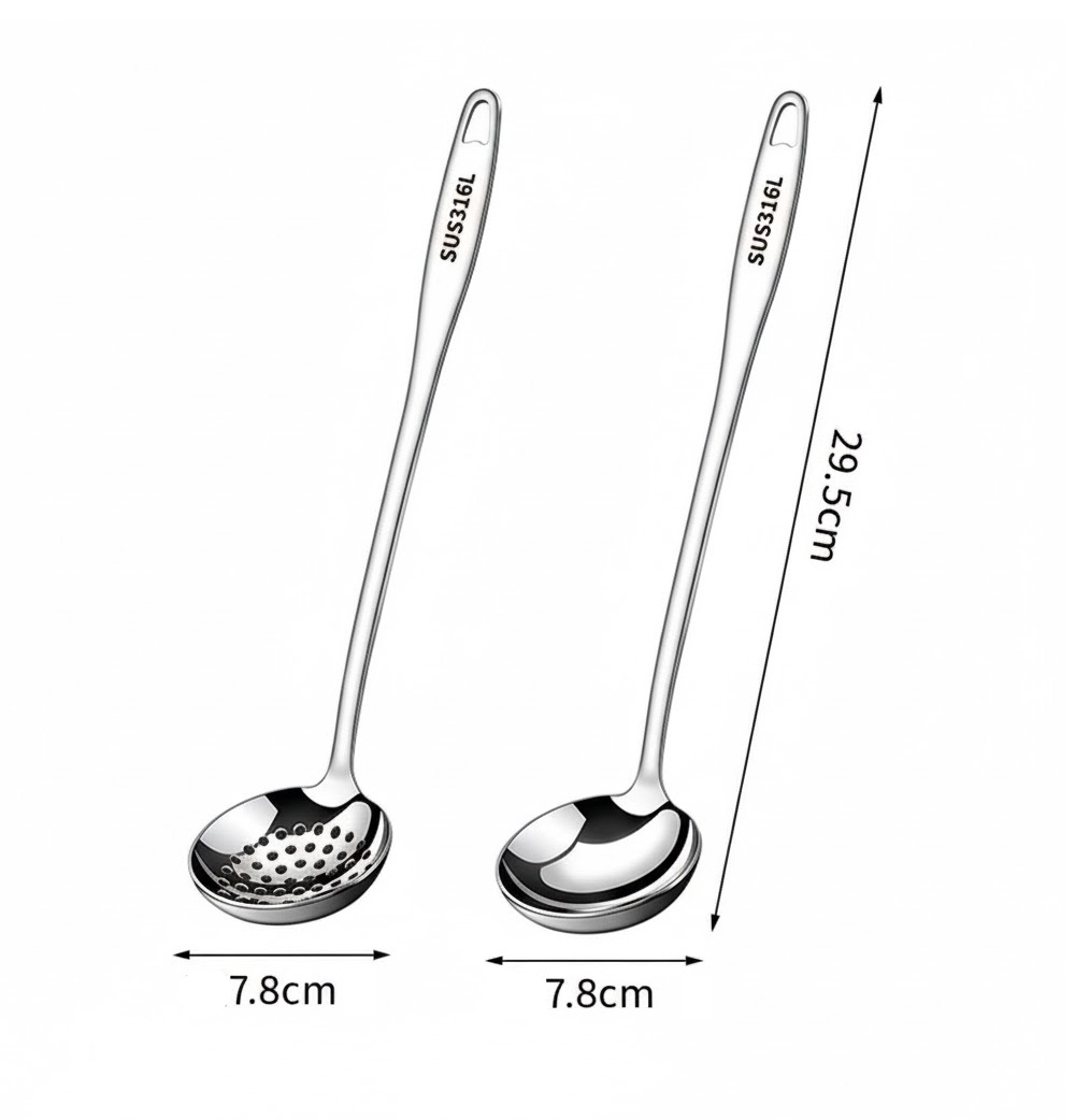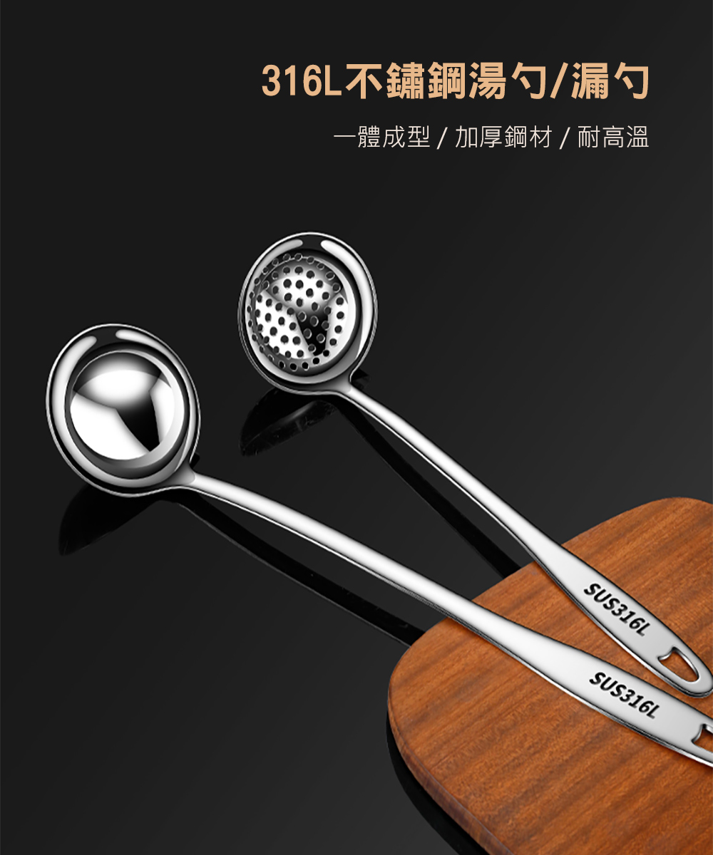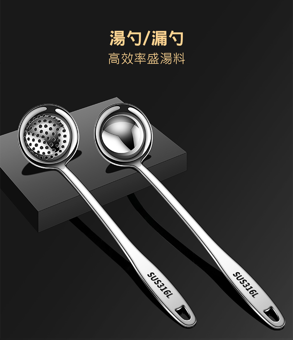 【QHL 酷奇】316L不鏽鋼長柄湯勺/漏勺-29.5cm