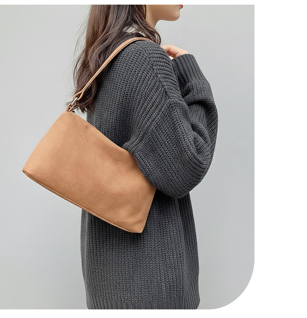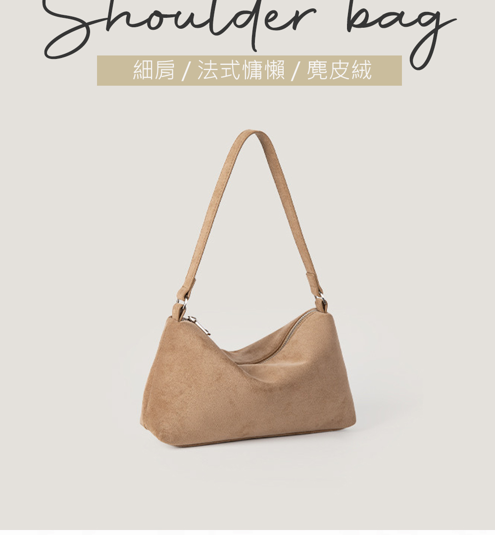 【JOYFUL LIFE 特樂生活】麂皮絨手提單肩腋下包法棍包