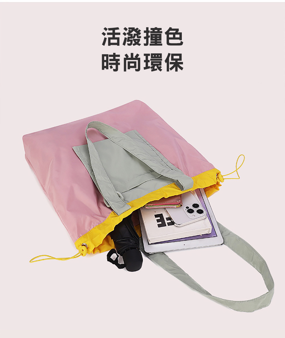 【JOYFUL LIFE 特樂生活】抽繩撞色環保購物袋
