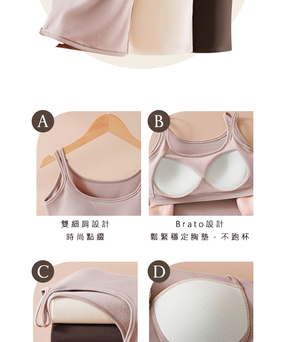 【Kosmiya】3件組 帶罩杯 微絨雙細肩保暖發熱背心/發熱衣/Bratop/女內衣/無鋼圈內衣/內搭