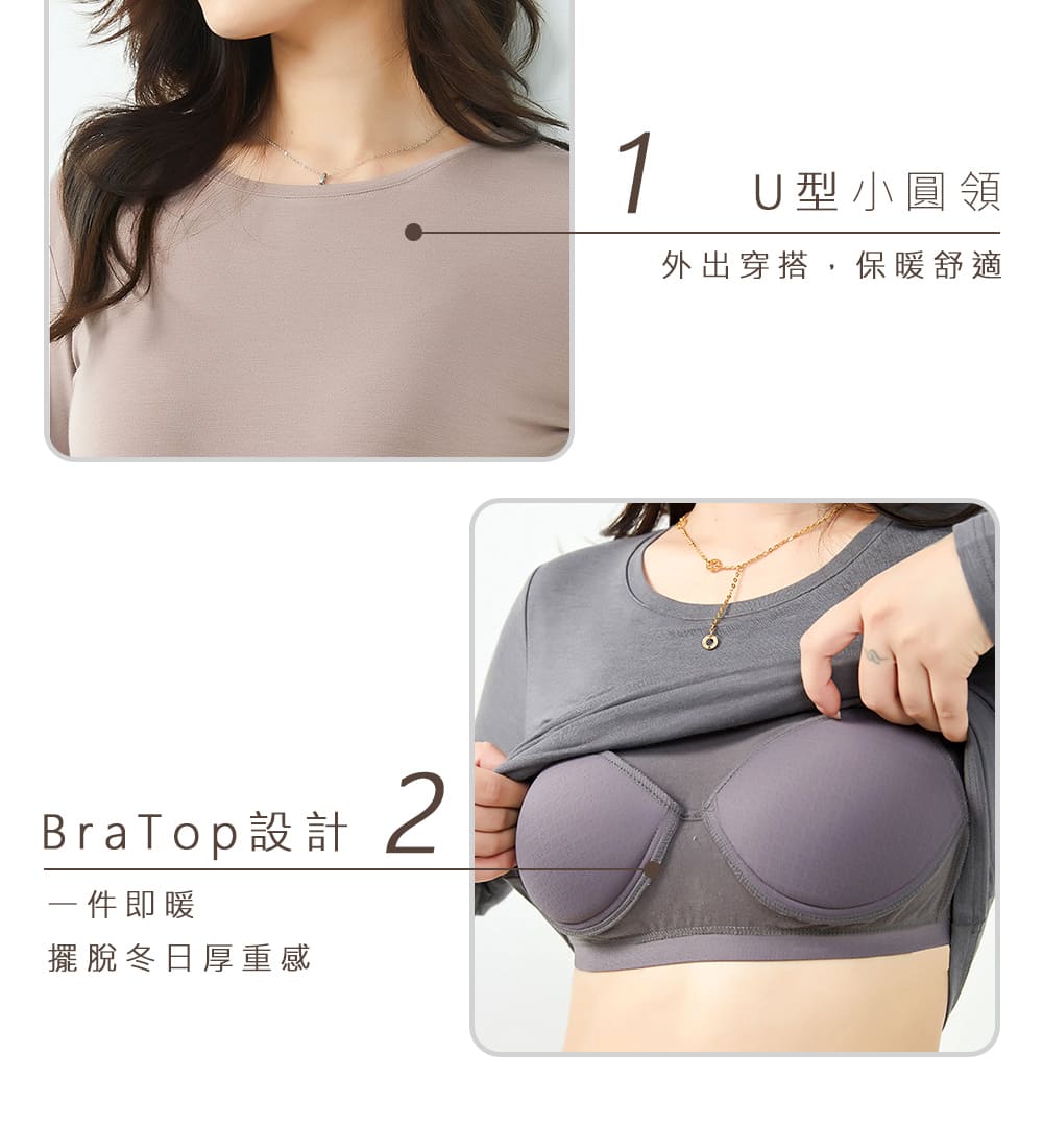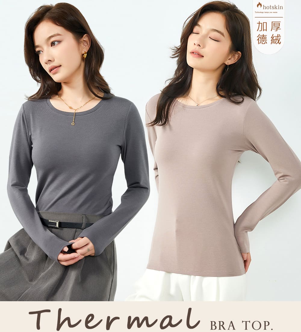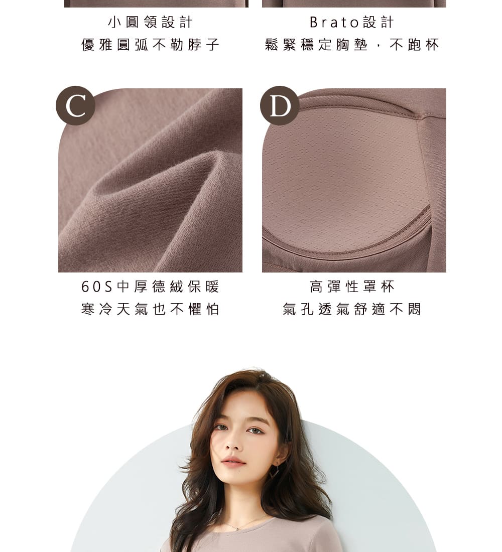 【Kosmiya】2件組 帶罩杯 厚磅暖絨小圓領保暖發熱上衣/發熱衣/Bratop/女內衣/無鋼圈內衣