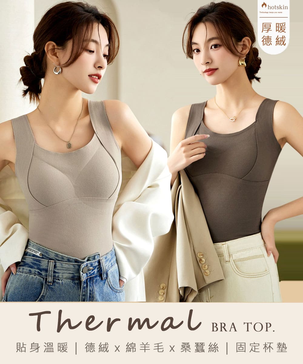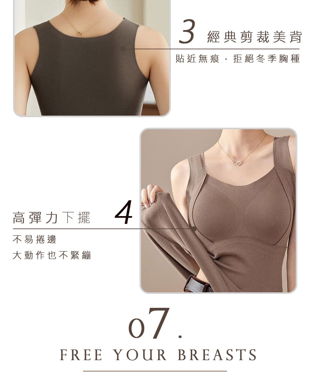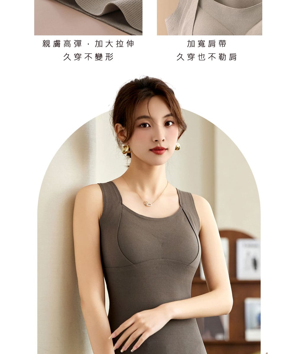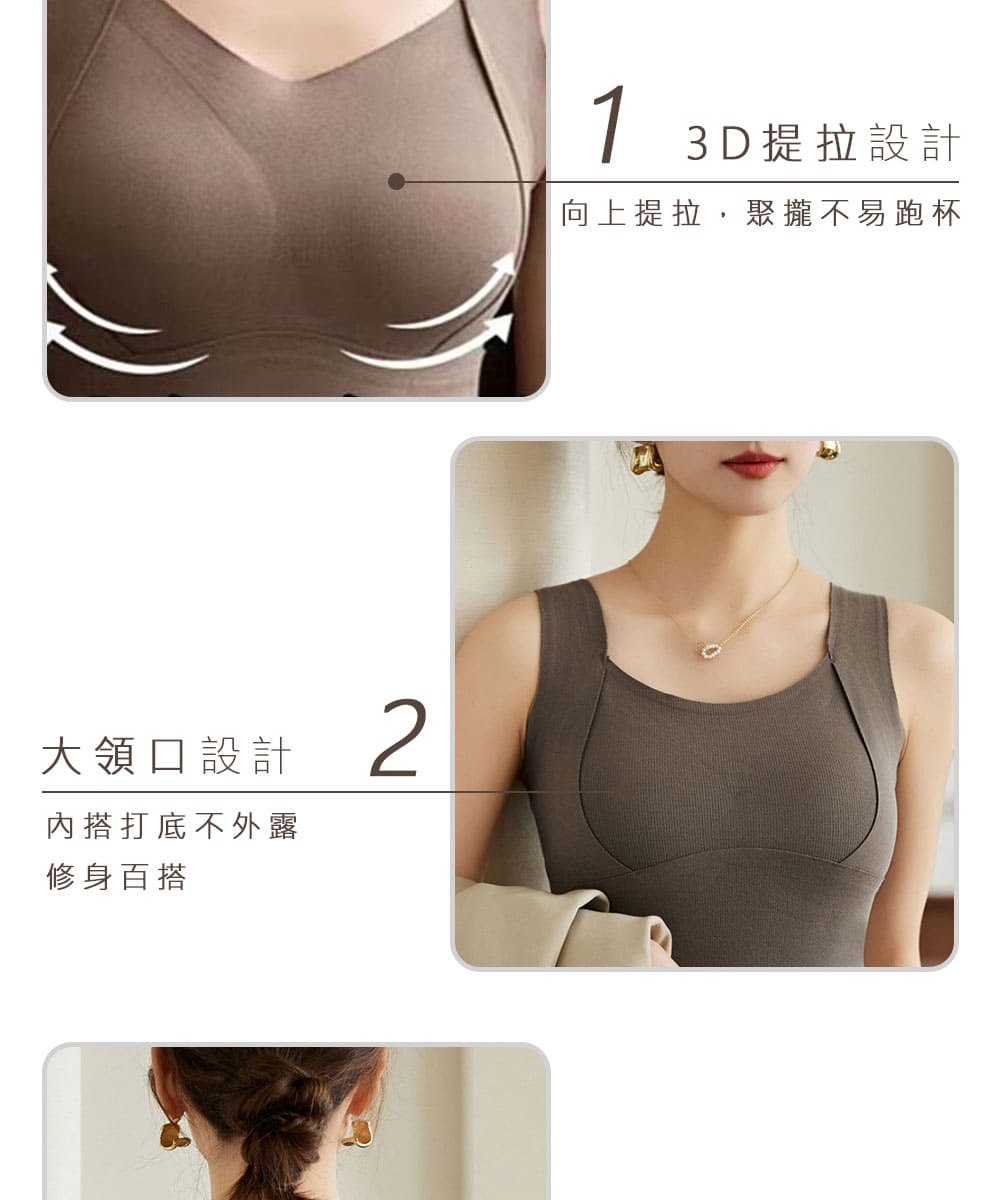 【Kosmiya】3件組 帶罩杯 羊絨桑蠶絲 簡約奢華保暖發熱背心/發熱衣/Bratop/女內衣/無鋼圈內衣(3色/XL-3XL)