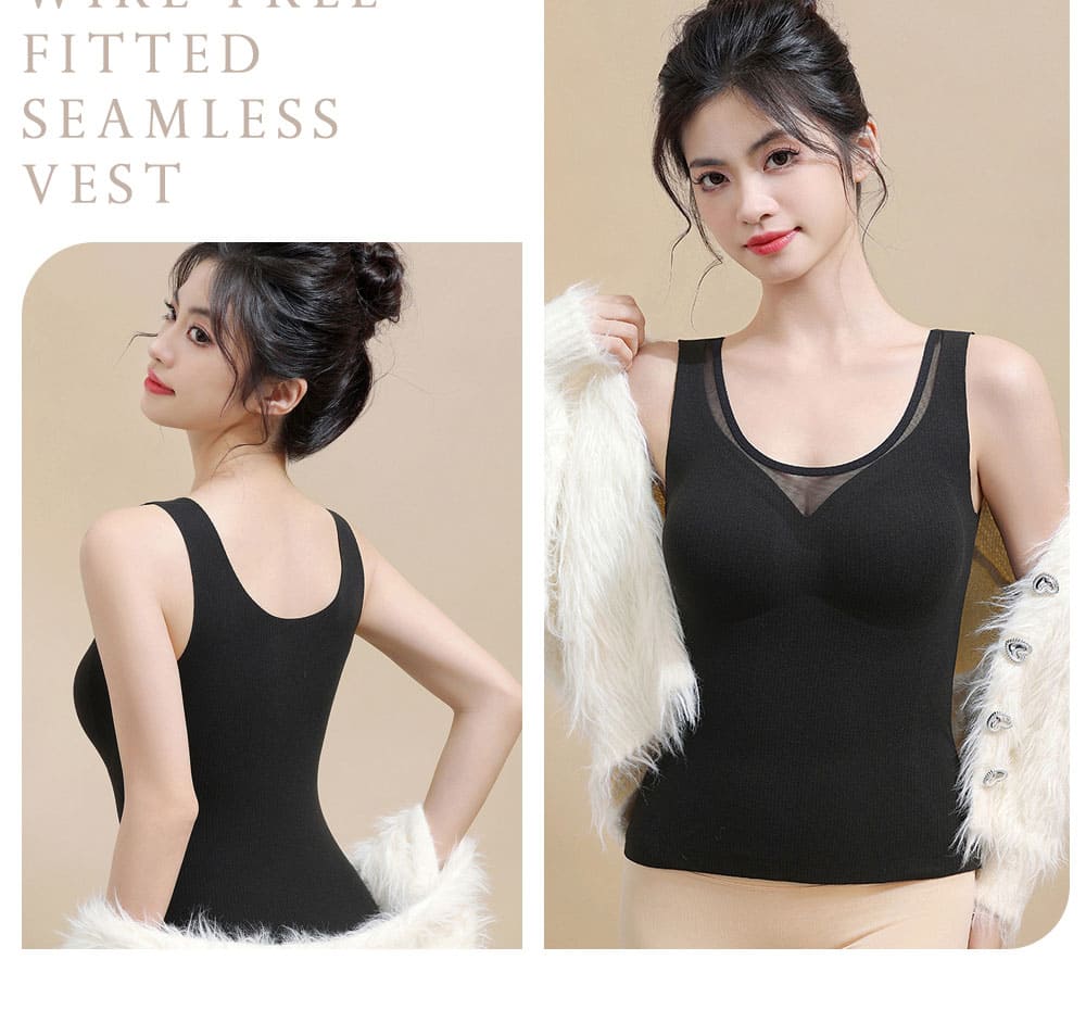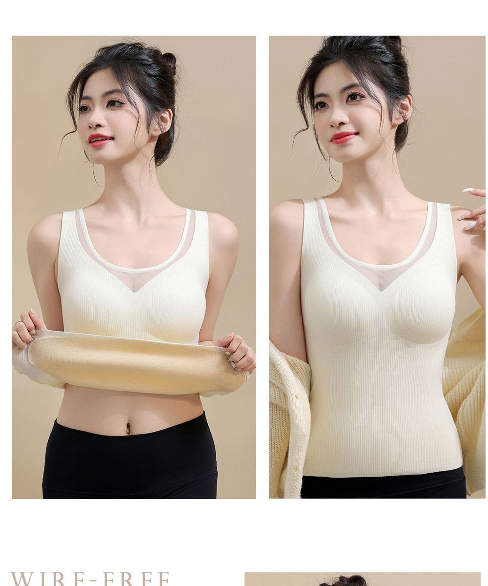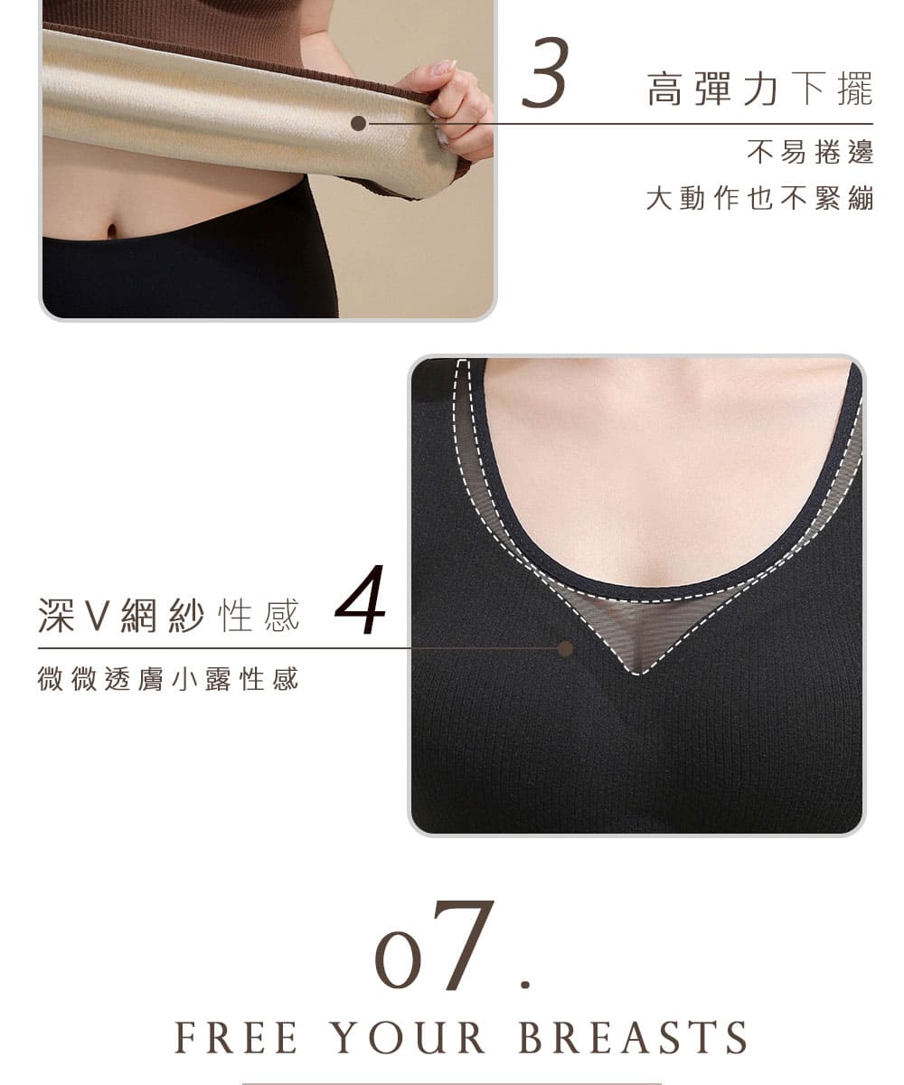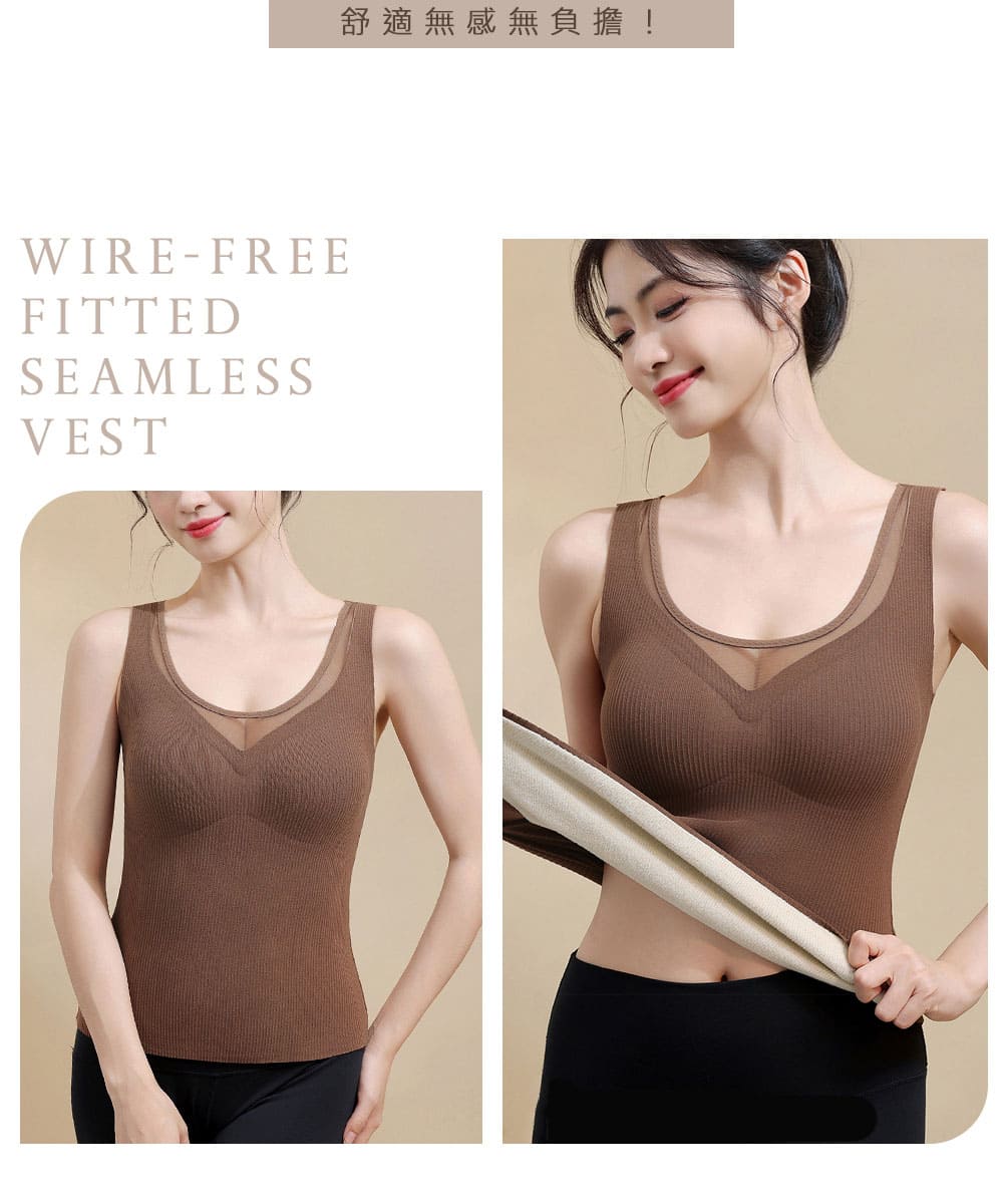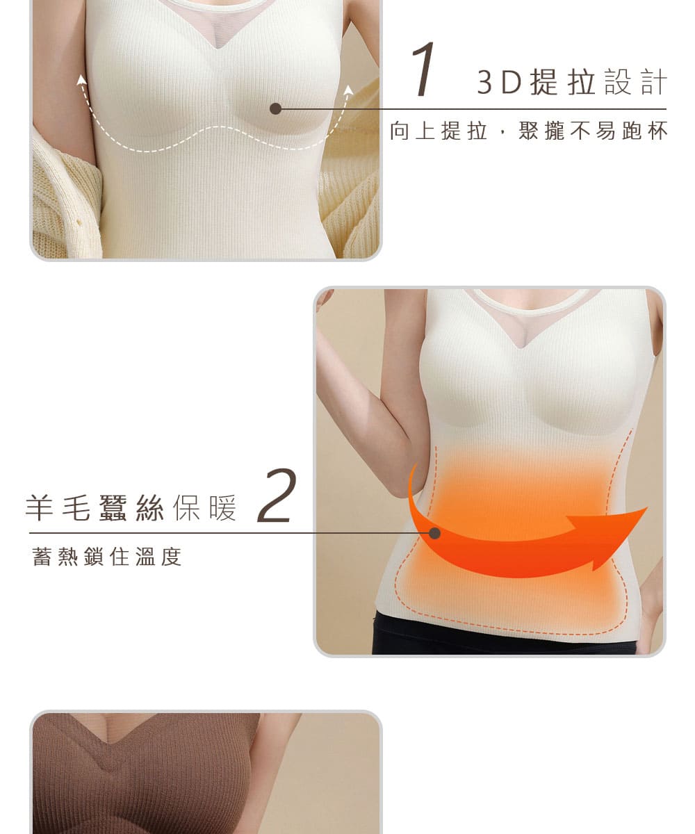 【Kosmiya】3件組 帶罩杯 羊絨蠶絲 深V網紗保暖發熱背心/發熱衣/Bratop/女內衣/無鋼圈內衣(3色/L-2XL)