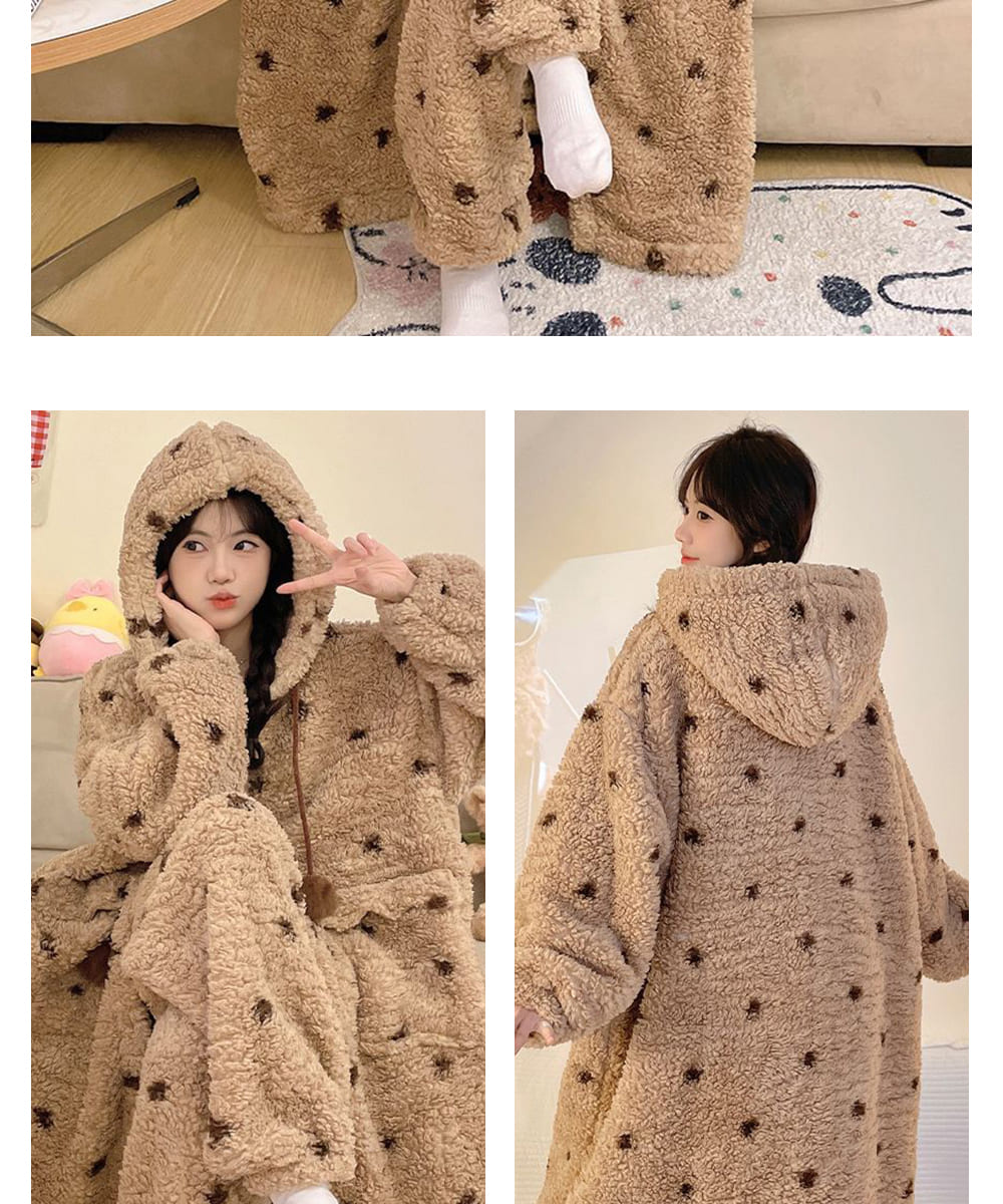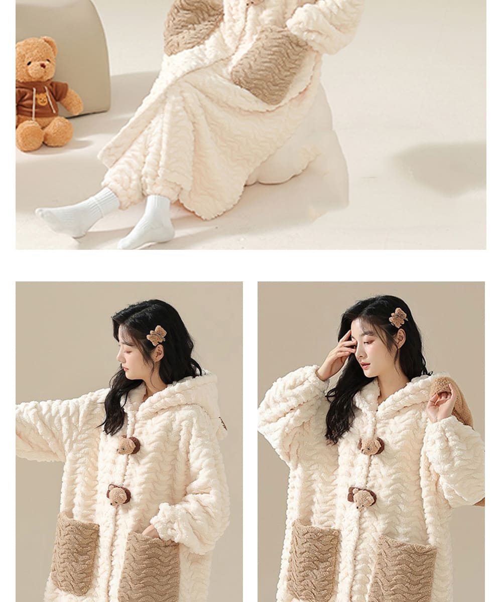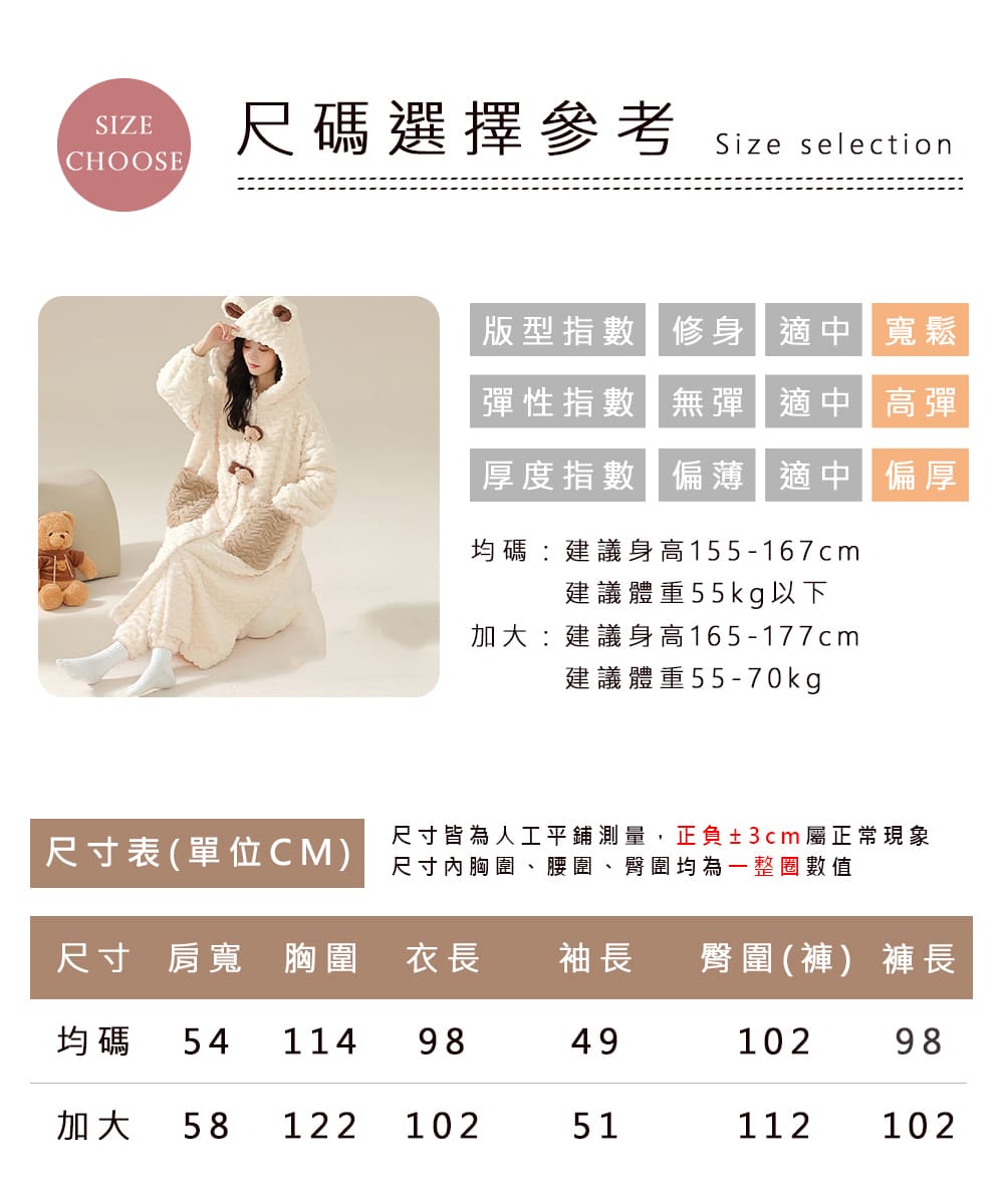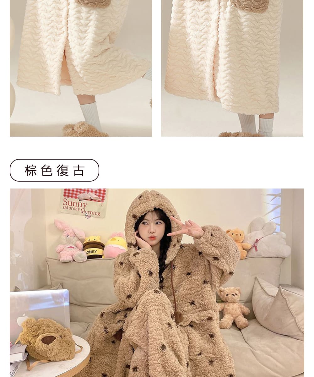 【Kosmiya】1套 極厚暖法蘭絨 可愛熊長袖睡袍睡褲/女睡衣/居家服/睡衣套裝/保暖睡衣(2色可選/均碼/加大碼)