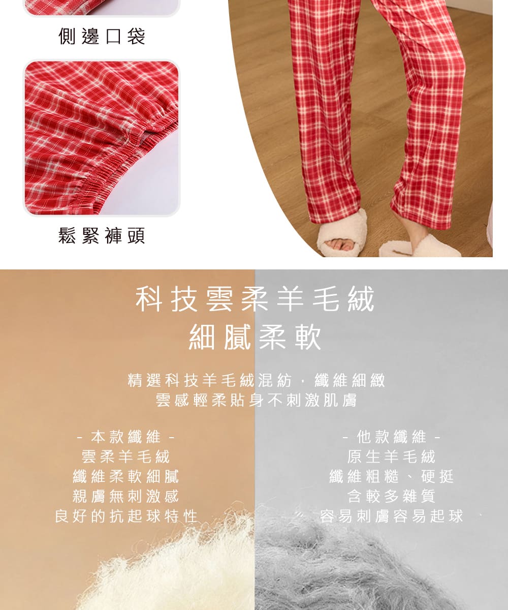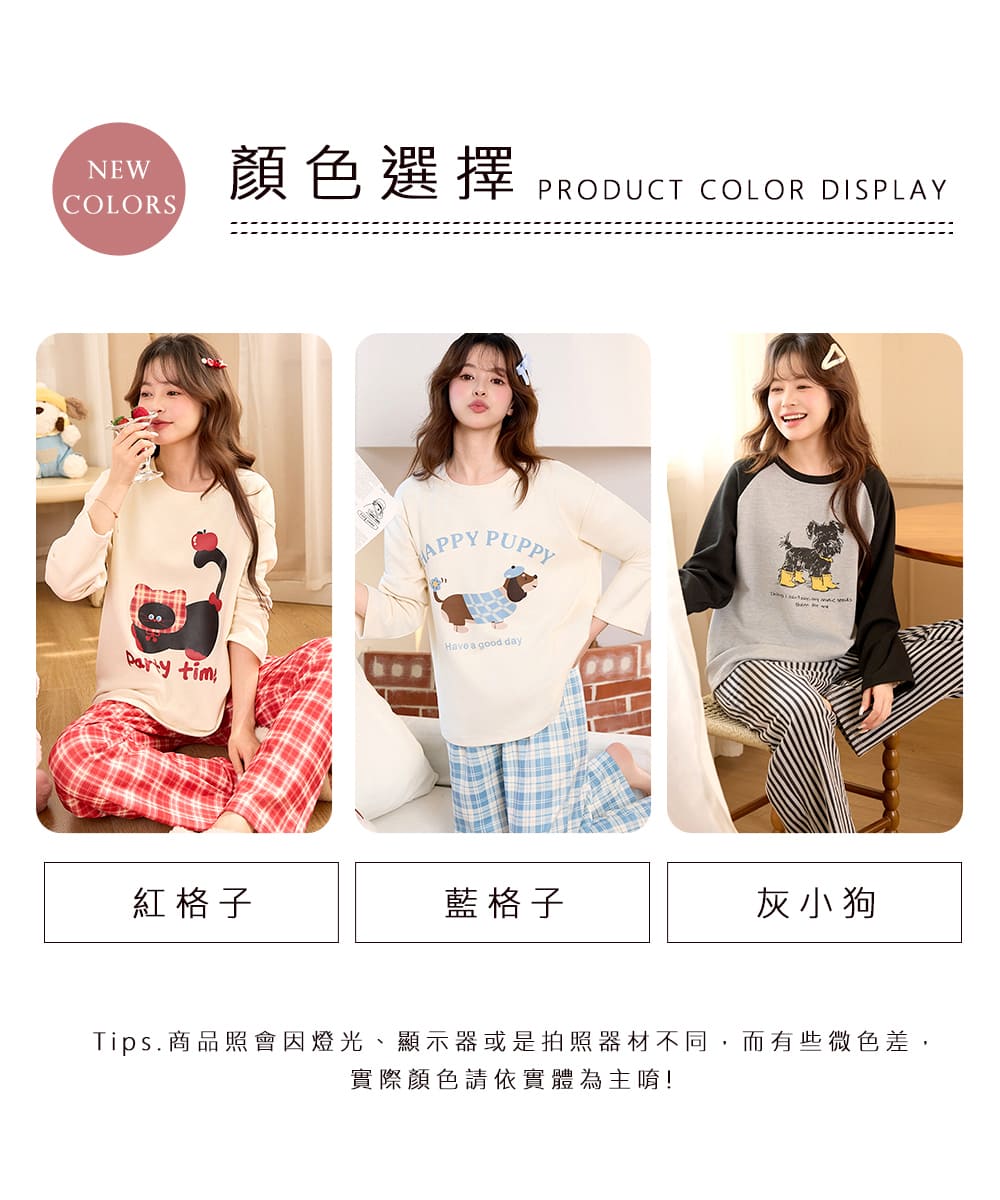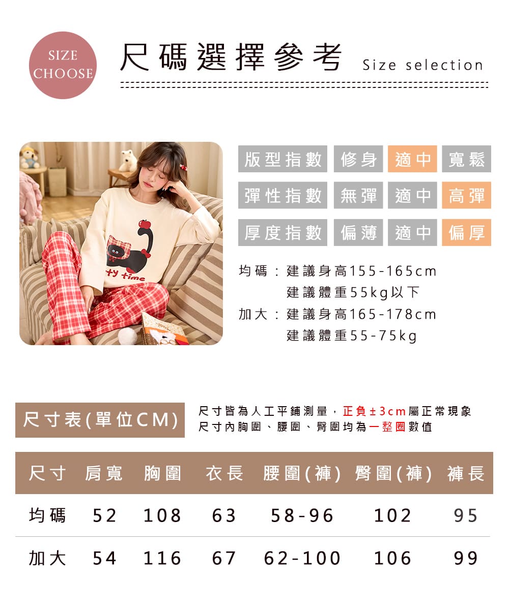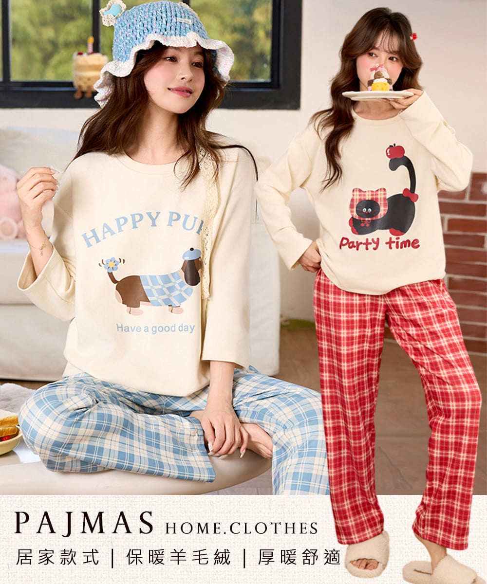 【Kosmiya】1套 厚羊毛絨保暖 格子小寵長袖睡衣/女睡衣/居家服/睡衣套裝/保暖睡衣(3色可選/均碼/加大碼)