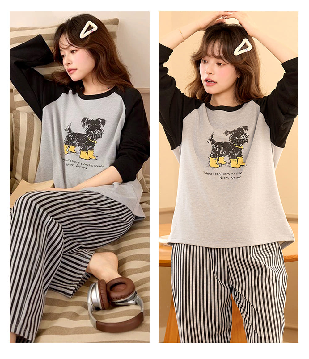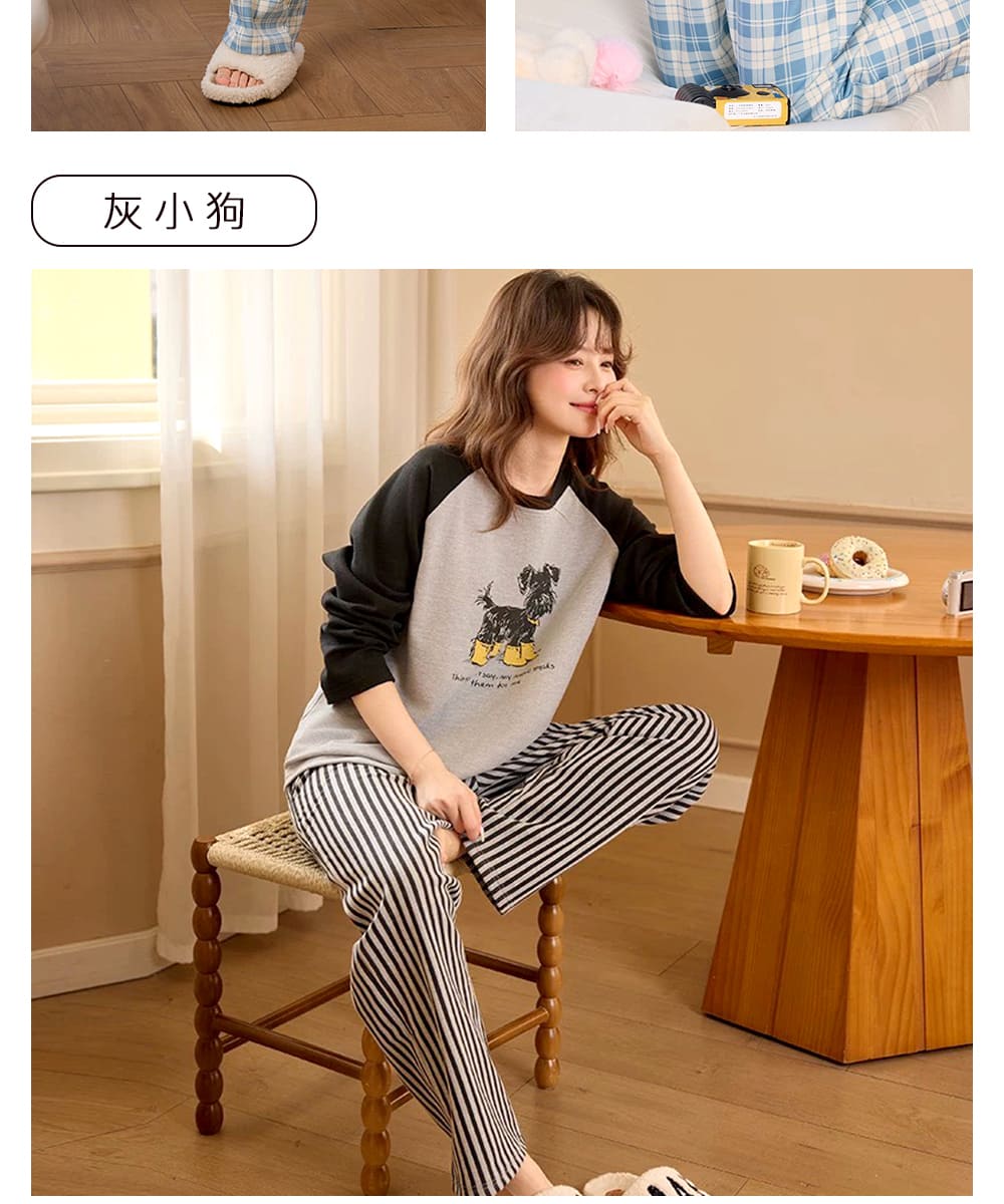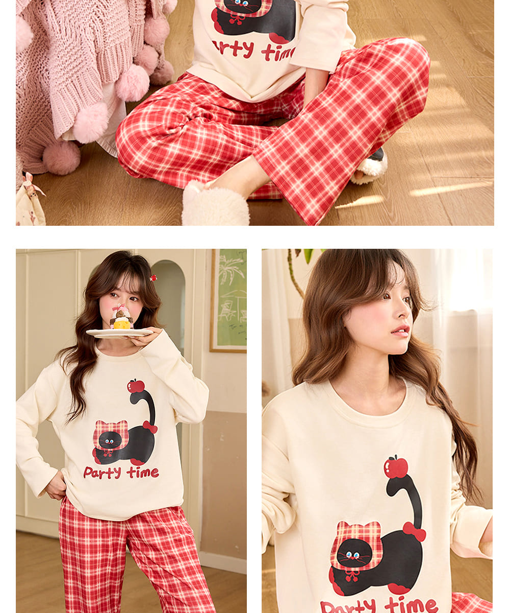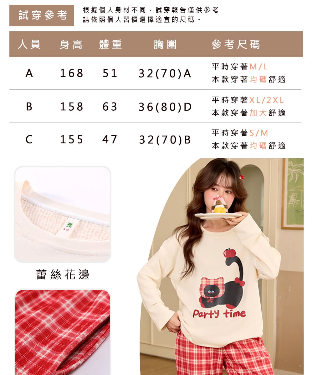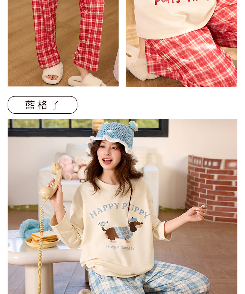 【Kosmiya】1套 厚羊毛絨保暖 格子小寵長袖睡衣/女睡衣/居家服/睡衣套裝/保暖睡衣(3色可選/均碼/加大碼)