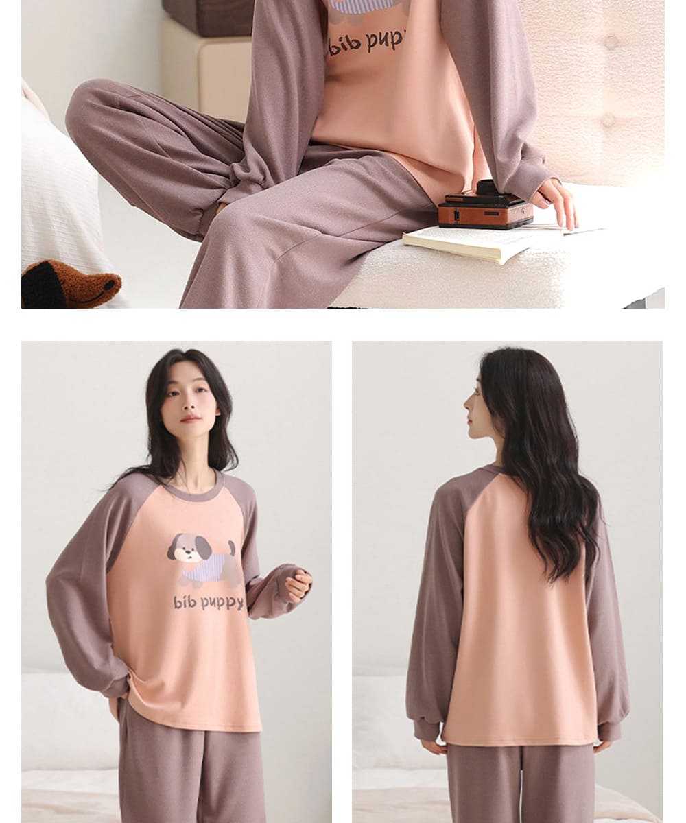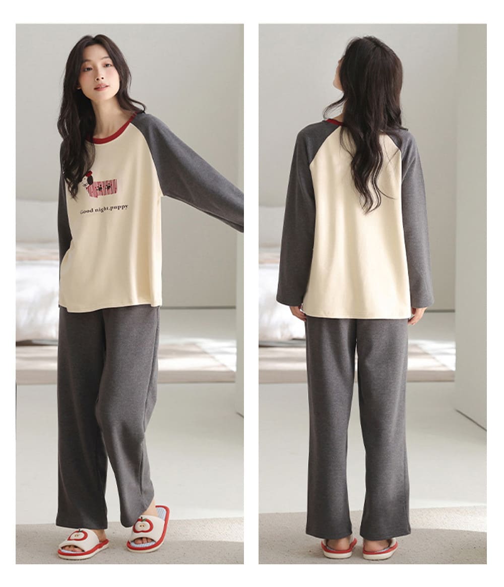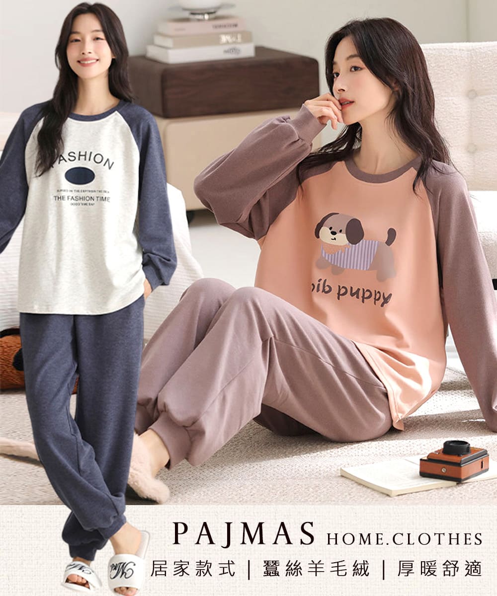 【Kosmiya】1套 雙面蠶絲羊毛絨 韓系手繪長袖睡衣/女睡衣/居家服/睡衣套裝/保暖睡衣(3色/均碼/加大碼)
